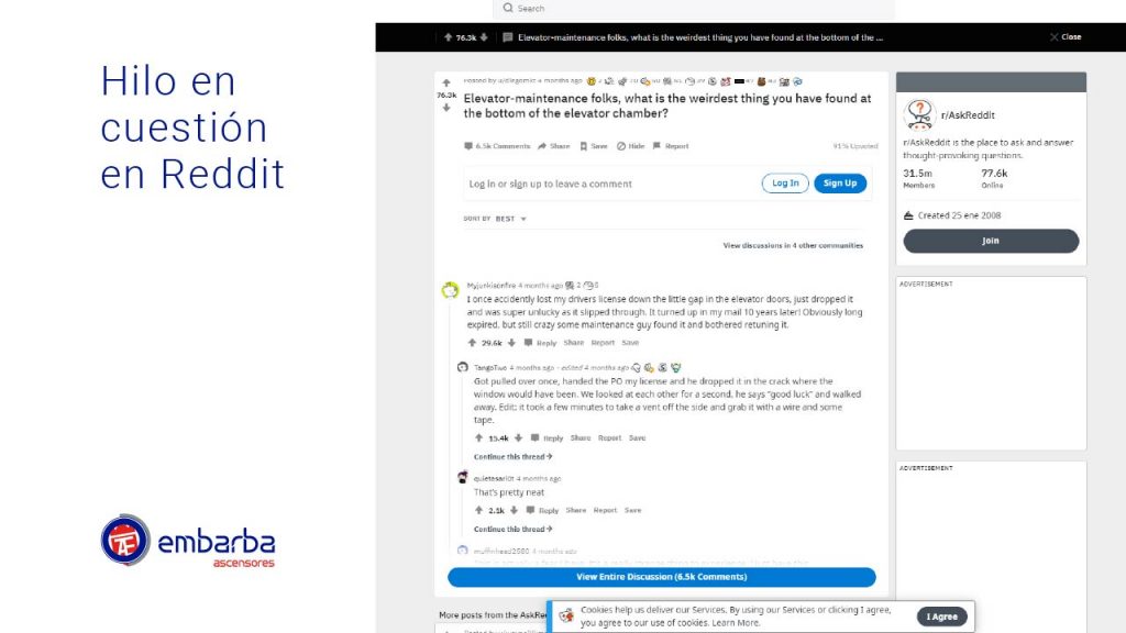 Hace unos meses en el foro REDDIT dentro de la sección ASK REDDIT… preguntaron a personal de mantenimiento de ascensores que es lo más extraño que encontraron en el foso del ascensor. En este hilo se detallan las cosas más extrañas e increíbles que se han encontrado en el hueco de un ascensor. A continuación vamos a recopilar las más interesantes y extrañas que hemos leído: