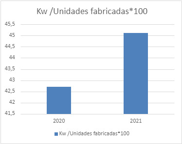 Este indicador se referencia al número de unidades fabricadas por año, se puede ver una subida durante el último año, hay que tener en cuenta que el año 2020 la producción bajo debido a la pandemia.