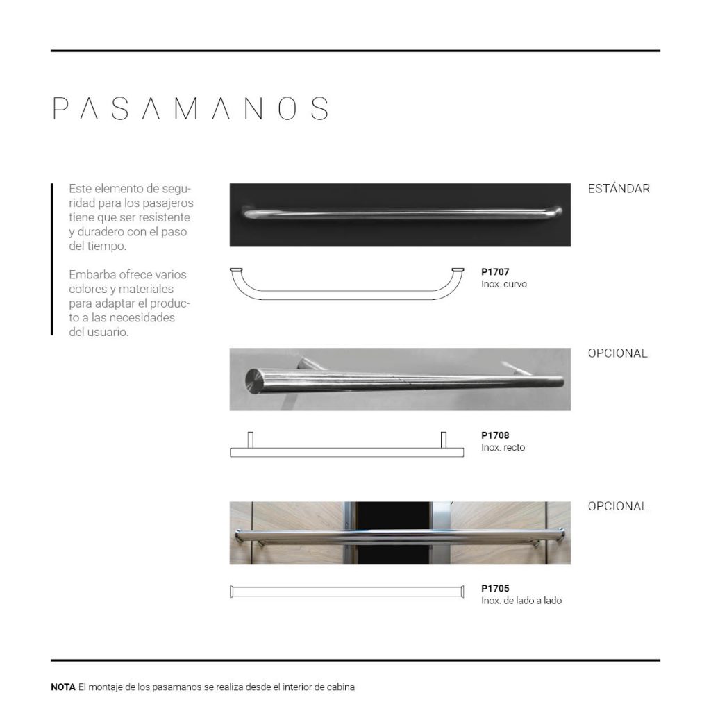 Este elemento de seguridad para los pasajeros tiene que ser resistente y duradero con el paso del tiempo. Embarba ofrece varios colores y materiales para adaptar el producto a las necesidades del usuario.